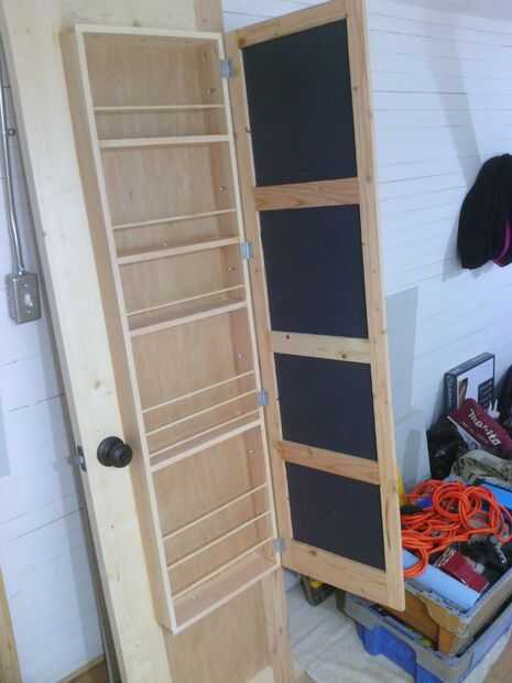 Alinee las bisagras dentro de las ranuras talladas en la puerta de espejo y debe estar a punto de terminar! En este momento la puerta del espejo va a necesitar algo que lo mantenga cerrado. Usé 2 barra deslizante tipo cierres en la parte superior e inferior. Pero, harán cualquier cierres. Ahora el espejo de puerta de armario se puede instalar en el atasco!