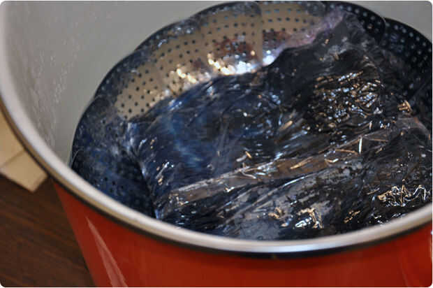 Colocar el hilo en la cesta de vapor en la vaporera y ponga la tapa. Dejar al vapor durante unos 45-60 minutos. Puede vapor múltiples madejas a la vez, tantos como el vapor se mantenga sin apilarlos.