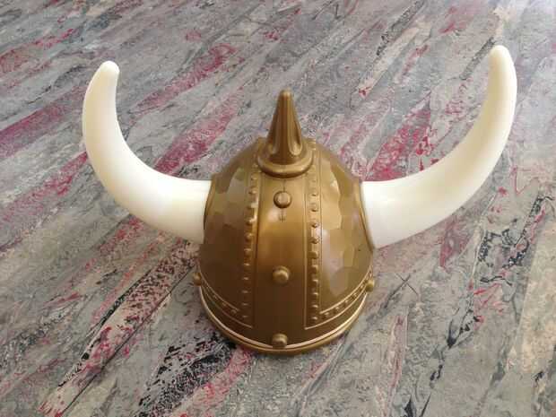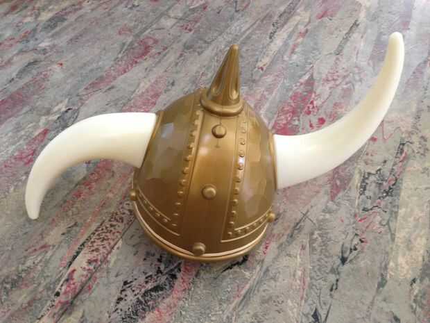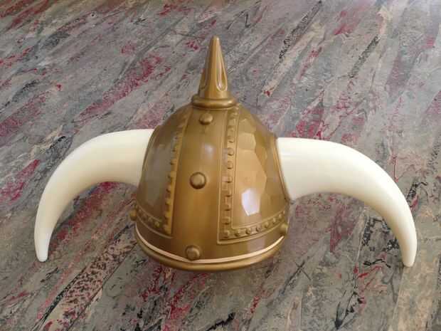 Compré el casco con cuernos en una tienda de Halloween, junto con una espada de plástico con luz. Cascos de vikingos vienen en tres variedades, en la foto superior. Hay heroico vikingo, bastante estándar, ambos cuernos para arriba. Hay vikingo loco con los cuernos apuntados hacia arriba y hacia abajo. Finalmente, usted podría elegir ser mudo Viking, dos cuernos hacia abajo. Viking tonto llega a entrar en la mazmorra primero!