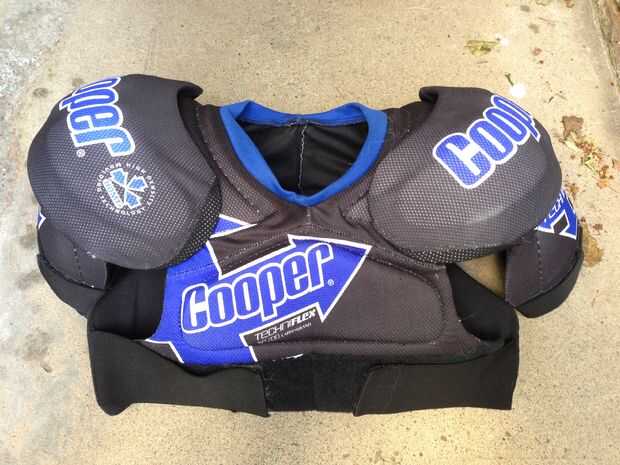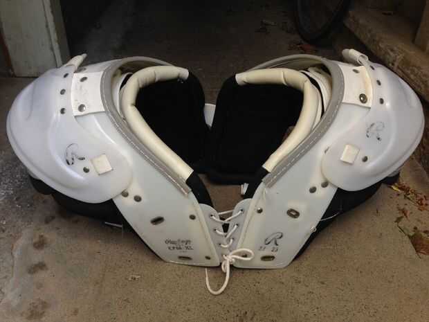 De la coraza, robaban algunos cojines de lacrosse de la calle (lo mismo con las rodilleras del receptor). Un conjunto de almohadillas de fútbol funcionaría igual de bien, pero son mucho más pesados.