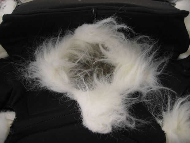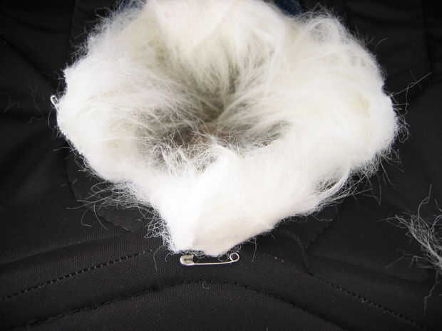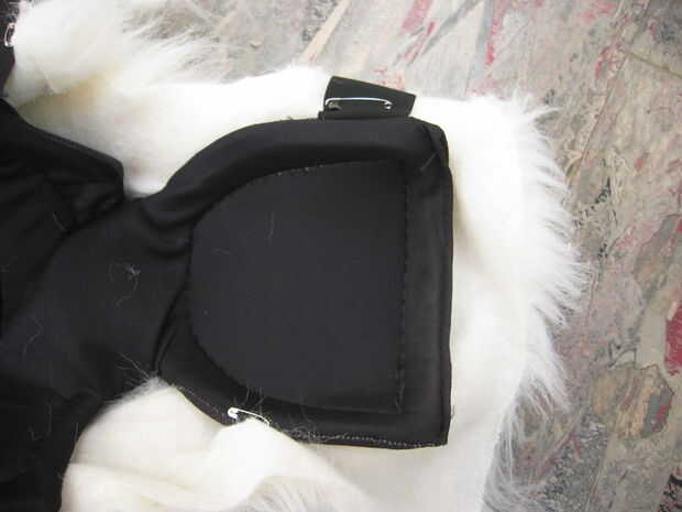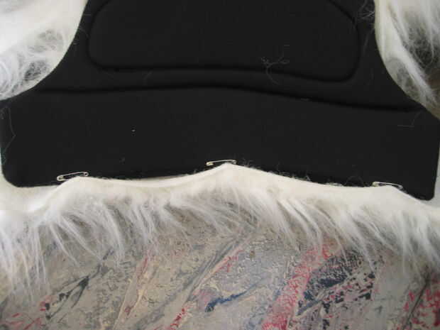 Por último, extraiga los cuatro triángulos dejadas por el X rebanadas para la abertura del cuello. PIN down lo suficientemente lejos de la abertura que un alfiler no pop abierto mientras ponerse o quitarse este traje. Mejor aún, la puntada hacia abajo. Sólo usé imperdibles porque quería ser capaz de cambiar la piel en el futuro.