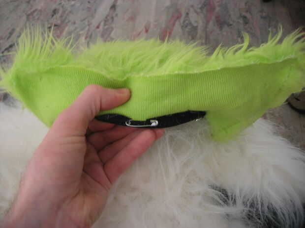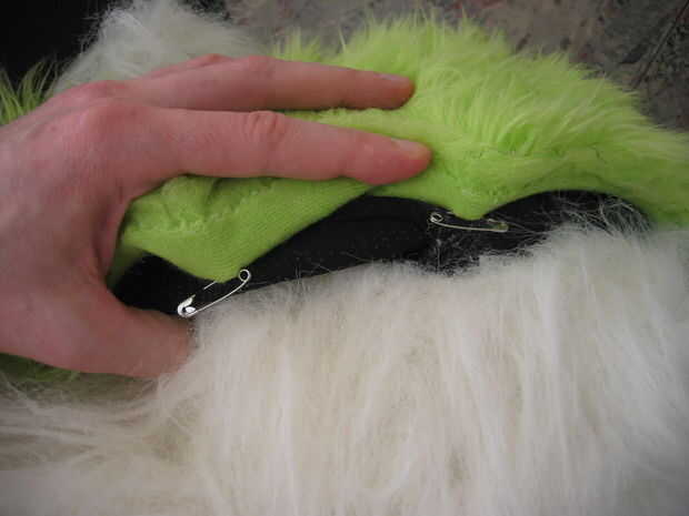 Para hacer la ronda termina, pin juntos dos esquinas del rectángulo y luego métalos bajo la almohadilla hasta que se ve bien. La piel no saltar si no es atendida con.