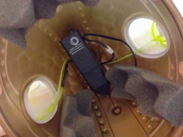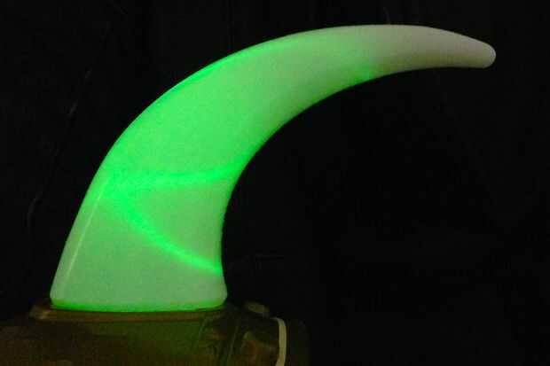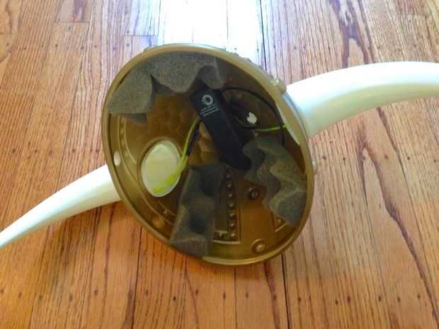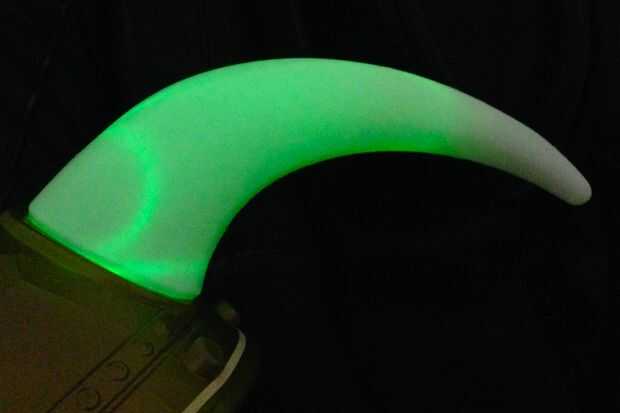 Usé más velcro y un separador de cartón para sujetar la batería hacia el interior de la corona del casco. Luego roscado EL alambre en los cuernos por lo que se ilumina a lo largo tanto de su longitud como sea posible.