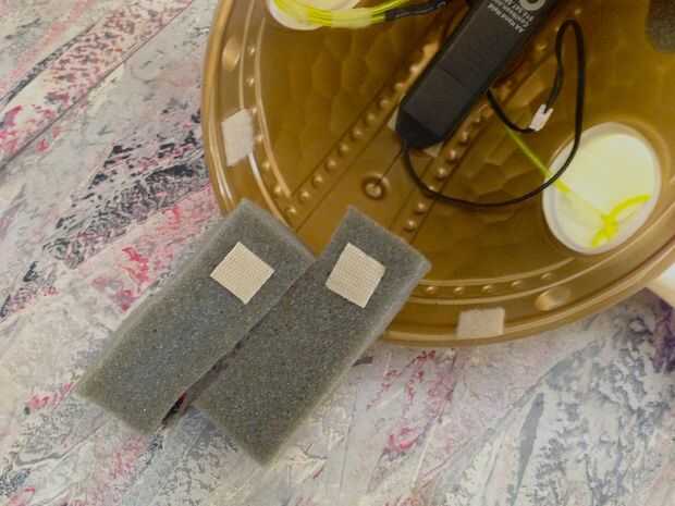 Pero que el casco era pesado y creo que mi uno nuevo es mucho mejor. Tengo un casco más ligero, plástico con cuernos translúcidos. Entonces me puse un velcro y corte un cuadrado pequeño para cada pedazo de acolchado de la espuma que quería dentro del casco. Pegué el lado difuso para el casco y el gancho de las piezas de espuma.