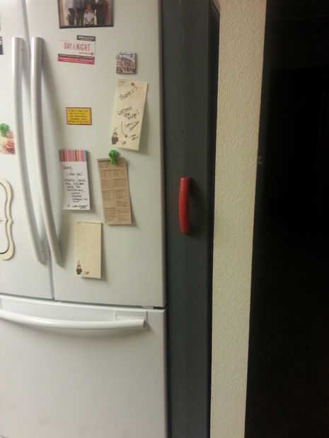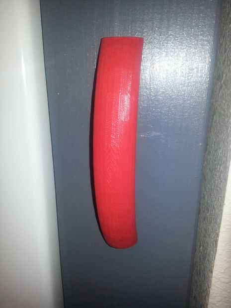 El mango fue bastante fácil, sabía que la distancia al centro de los tornillos. Si usted compra uno de un almacén del hardware, sólo marcan los puntos en su despensa, asegúrese de que no van a pegar un estante en el interior y utilice una broca que es aproximadamente el mismo tamaño que sus tornillos.