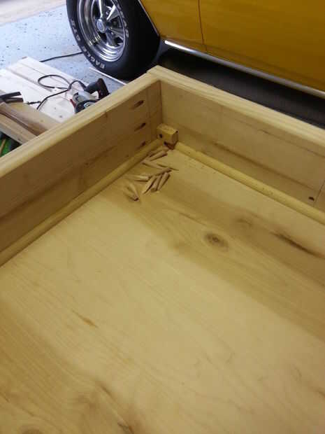 Entonces medí los bordes de la despensa para el cuarto redondo, cortar las piezas necesitadas y que fue martillado en lugar así. Ahora es un buen momento para poner en tapas de agujero de bolsillo de su Kreg, si no has hecho. Un poco de madera pegamento y ajuste derecho en su lugar.