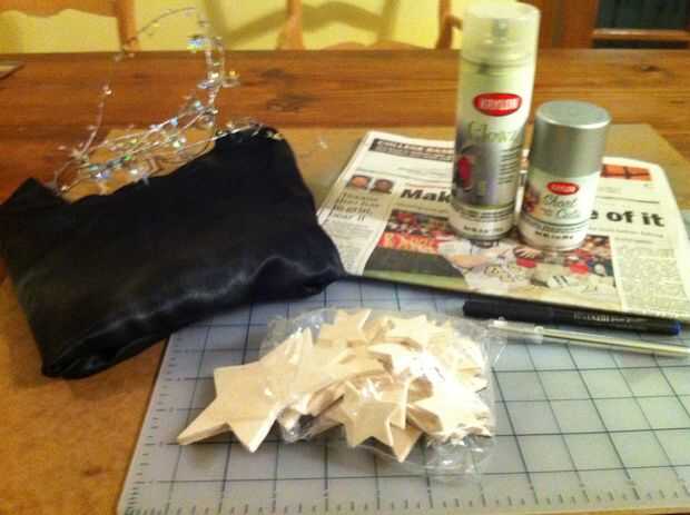 Encontré este bolso de estrellas para aproximadamente $1,26, y hay bastantes estrellas. También son utilizables para otras cosas. Se podría pintar las estrellas (una ventaja de tener pintura de spray normal) y los más pequeños en la joyería.