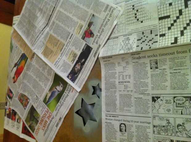 Asegúrese de sujetar la plantilla en su lugar (conseguir creativo con sus partes del cuerpo, que necesita una mano de pintura). La boquilla es hacia abajo y spray solo en impulsos cortos. Deje el diseño fresco durante unos momentos, luego se mueven en al siguiente juego de estrellas.