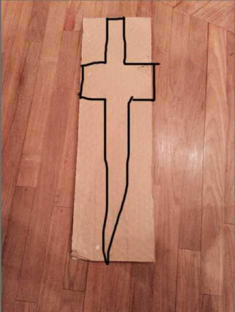 En primer lugar usted necesita dibujar una forma de su espada en el pedazo de cartón. Se pueden dibujar una flecha, un hacha o lo que sea, es tu opción.