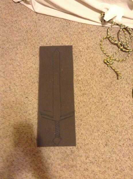 Primero necesitas un rectángulo de espuma de 1" espesor la longitud depende de cuán grande quieres tu espada para ser. Utilizar un marcador (rotulador funciona mejor) para dibujar su espada en la espuma