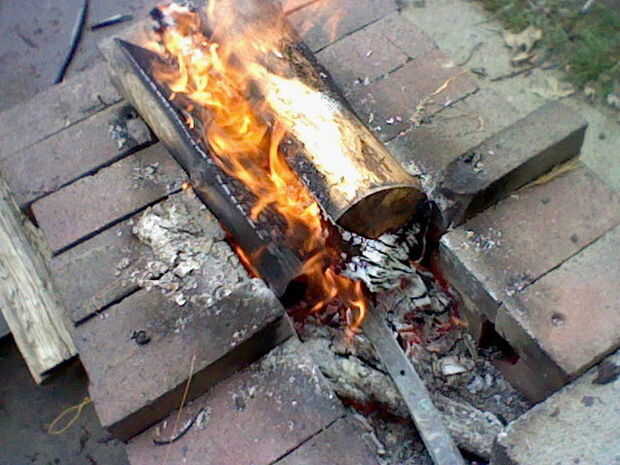 Ahora que estamos todos clavados y tener nuestra fragua va completo acelerador pegar la punta en la parte más caliente del fuego.