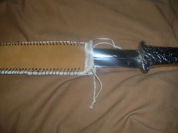 Luego tienes que coser el hilo negro a través de la piel y la capa superior de la caja de la grabadora (hacer que usted no coser a través de la media de su caso, la espada suele palo a través de) ser paciente lleva mucho tiempo hacerlo y es difícil de coser si no sabes cómo y dónde para coser a través de.