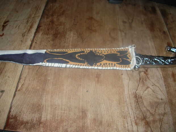 si sin envolver el mango de la espada de samurai y no puede calcular hacia fuera cómo envolver, aquí es cómo hacerlo.ACTUALIZAR POR FAVOR TARIFA!!! POR FAVOR CALIFIQUE!!!Paso 1: Cosas necesariasTe hace falta:envoltura de la espada:una vaina a envolve