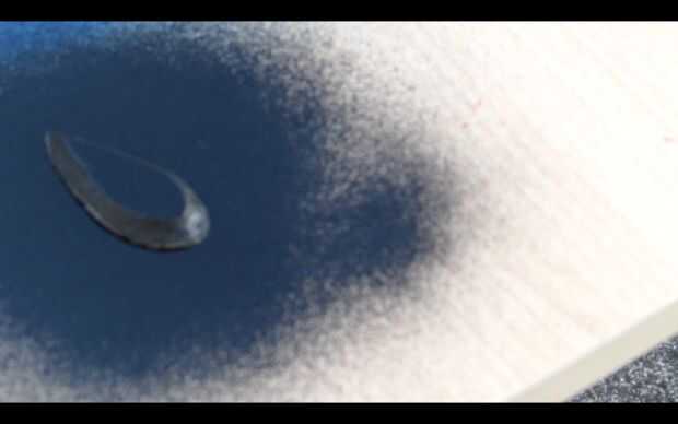 Sostener el aerosol plata puede alrededor de 20 vivo lejos de la lámina, aerosol en líneas constantes a lo largo de la longitud de la hoja hasta cubre la hoja entera.