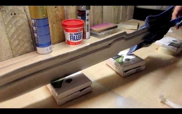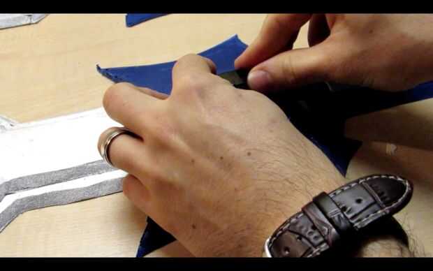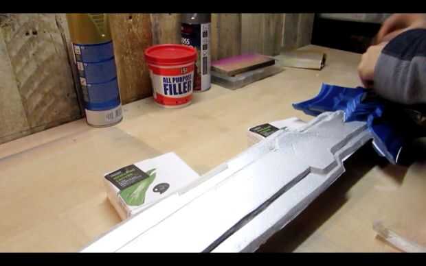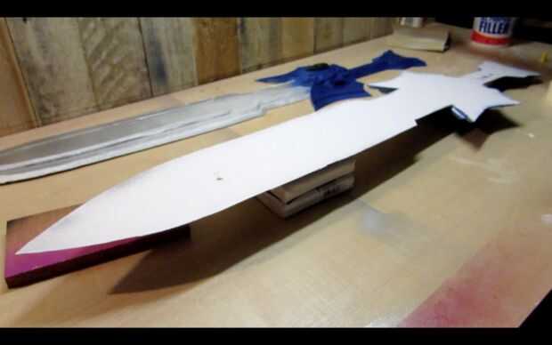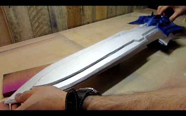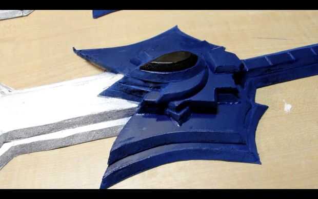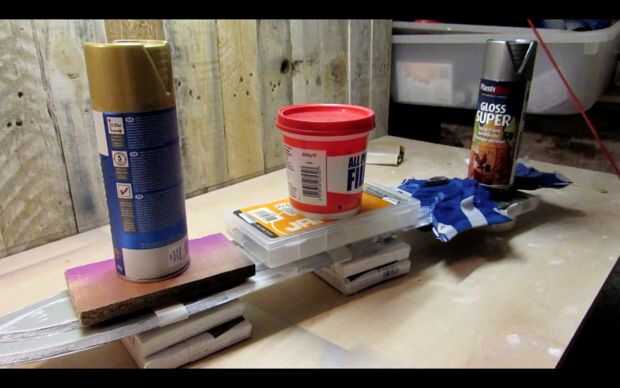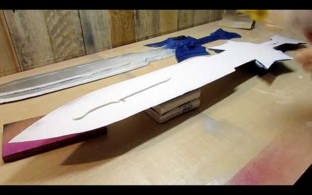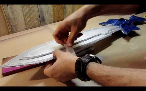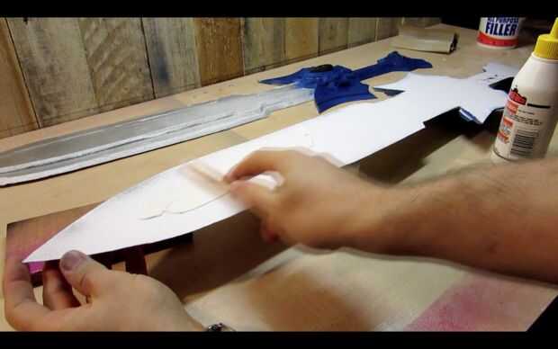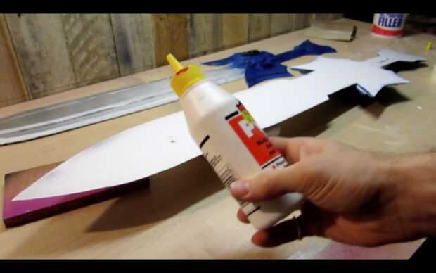 A continuación, ejecute una línea de PVA por la parte trasera de una mitad de la espada y la propagación de la cola con su palito de polo.