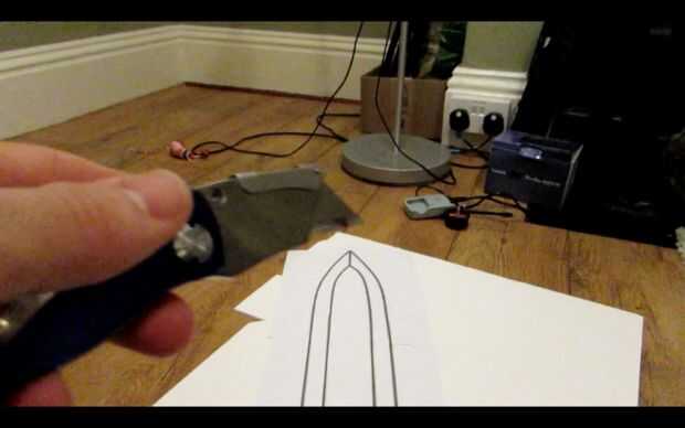A continuación, utilice su cuchillo para cortar alrededor del exterior de la espada.