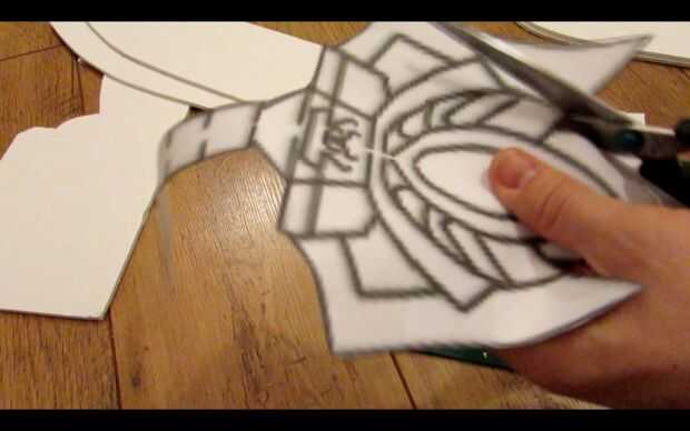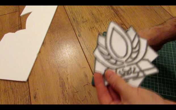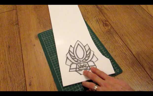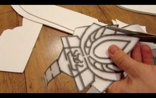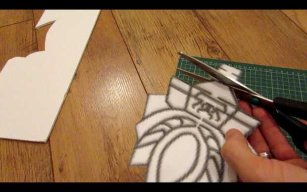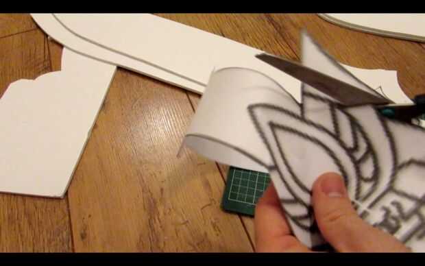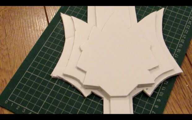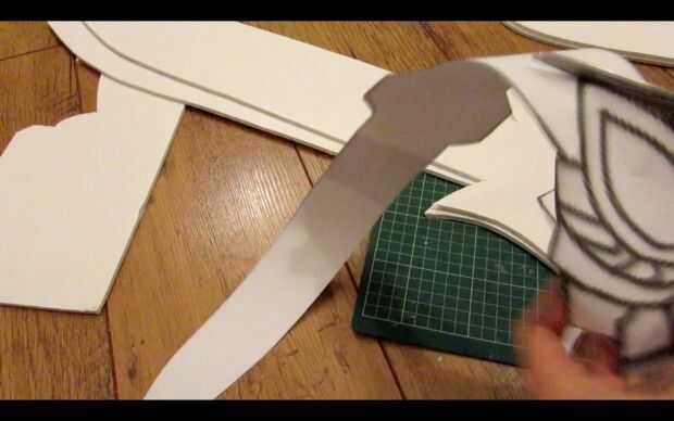 Para dar el soporte de la empuñadura principal, corte la plantilla como se muestra en las fotos, recortar la espada y la empuñadura.