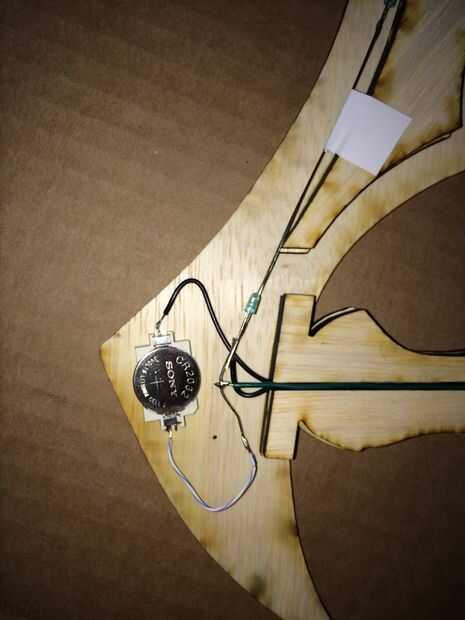 Soldar el titular de la célula de la moneda al negativo y positivo de los LEDs con hilo desecho pero deja una rotura en el cable de negativo/tierra y llevarlo hacia el botón. Así cuando usted presiona el botón el circuito está completo y los LEDs encienden.