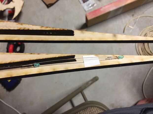 Encamine los alambres a través de los canales para que la cara superior de la espada va a quedar más tarde. Dejar un poco de holgura en los cables cerca del soporte de celda de moneda usted fácilmente puede alcanzar en y tire hacia afuera de la célula de la moneda en una fecha posterior para sustituirlo.