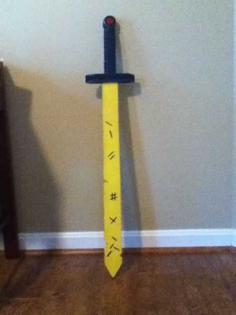 cómo hacer espada de Finn de hora de aventura de un viejo palo de hockey.--------------------------------------------------------------MaterialesUn palo de hockeyUna sierraPintura amarillo, negra, rojo y azulPaso 1: Cortar el palo de Hockey Encontré