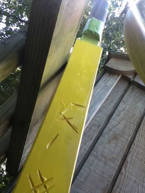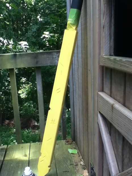 cómo hacer espada de Finn de hora de aventura de un viejo palo de hockey.--------------------------------------------------------------MaterialesUn palo de hockeyUna sierraPintura amarillo, negra, rojo y azulPaso 1: Cortar el palo de Hockey Encontré