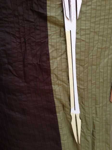 Mi proyecto inicial de cartón corté estaba hacia fuera el "grano" de la cartulina perpendicular al eje largo de la espada. Esto dio lugar a la espada débiles partidos y propensos a la flexión y flexión.