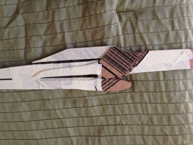 Porque mi primer intento de esta espada era muy débil con la cartulina, quería asegurarse de que dio tanta fuerza como pude, usé los siguientes pasos para reforzar la hoja.