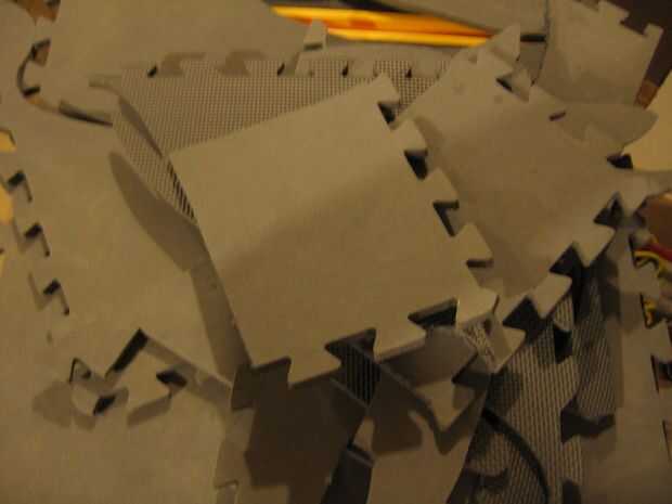 Use una tabla de cortar o estera, cortar con cuidado y lentamente. La hoja es muy afilada y puede fácilmente cortar lo que no quiere. Una vez que hayas cortado la hoja, dos piezas para la manija, dos piezas de la empuñadura y pomo, confirmar que los cortes fueron a través de la profundidad de la espuma. A continuación, retire las piezas de la almohadilla de espuma.