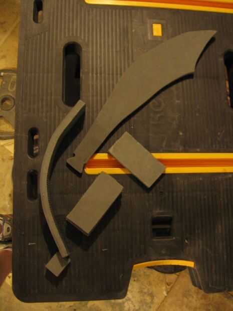 Corte una abertura en la empuñadura de la hoja, la abertura debe quedar ceñida. La espuma se comprime para adaptarse. Prueba de ajuste para asegurar que el tamaño es correcto.