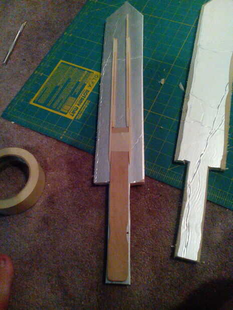 En realidad, poner la espalda en ella :) Los pinchos de la cinta y la pintura stir stick en el interior de la mitad. Asegúrese de que en la cinta firmemente.