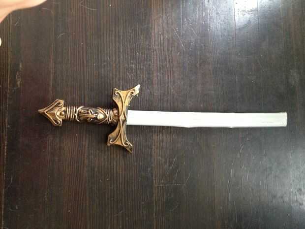 hey! hoy va a mostrar cómo hacer un conducto cinta zelda escudo y espada. primero lo que necesitas es, cinta blanca y gris,cartón, lápices de colores y una espada de juguete antiguo. primera que vas a hacer se cortan el cartón forma de escudo como és