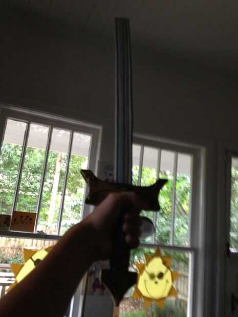 una forma divertida, rápida y fácil para hacer una espada de juguete para tu hijo (o usted mismo). Es áspero el tamaño y la forma de un gladius. Le di a mi niño para Navidad, y le encanta lo *. Todo lo que necesitas es:Una pieza de madera alrededor d
