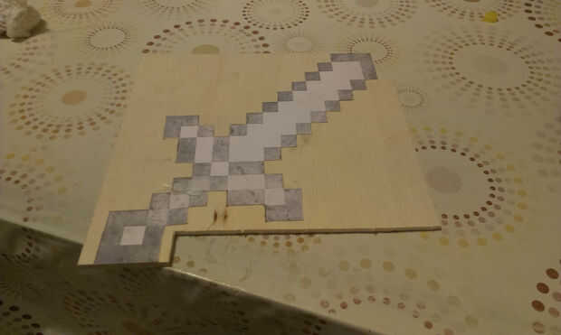 se trata de cómo hacer una espada de madera cuando no tienes un pedazo grande de madera. Si tiene cualquier duda pregunte.Paso 1: en primer lugar, dibujar el diseño sobre la madera, asegurándose de sacar una pieza que sobresale de uno y un espacio en
