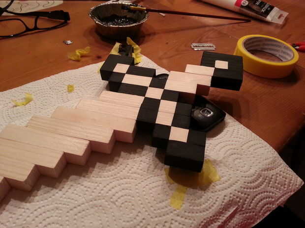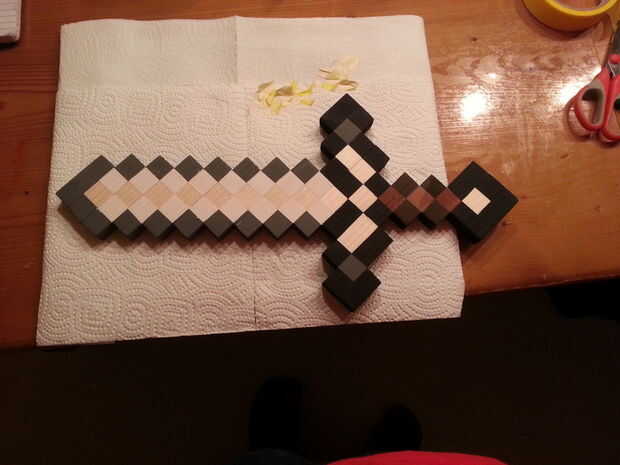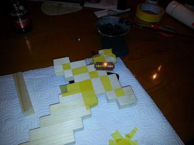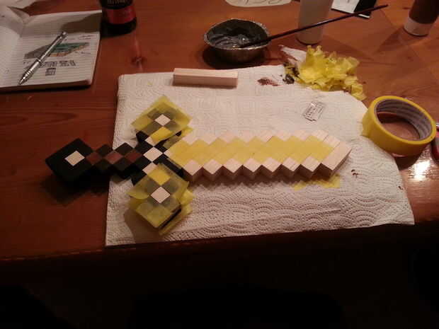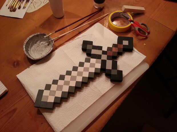 -Utilicé acrílico barato. Se seca muy rápido así que pude terminar la espada entera de una sola vez
