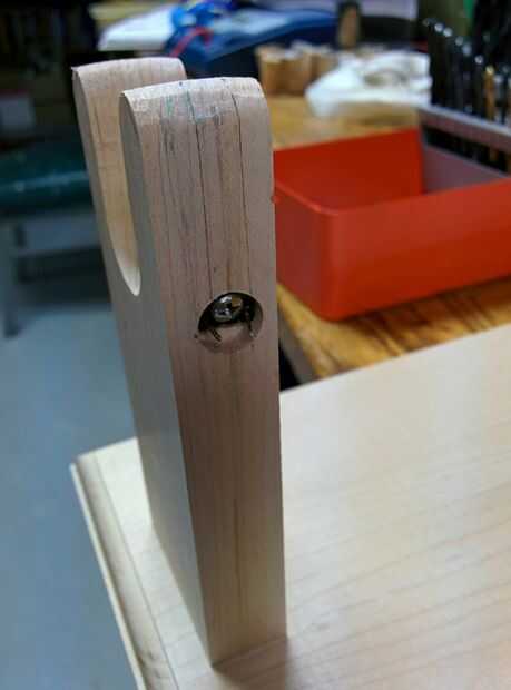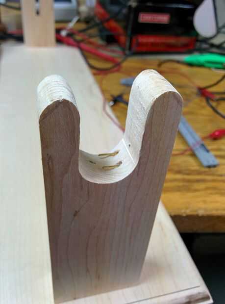 Utilizando chatarra arce las sobras de un proyecto anterior, se construyó un soporte simple. La base era dirigida con un poco de pedrería. El montaje de la cuchilla tiene una ranura para sostener la cuchilla vertical. El montaje de la empuñadura contiene 2 contactos plateados oro perforados de la parte posterior. Estos tienen un poco de elasticidad para hacer buen contacto con los 2 anillos de cobre en la empuñadura. Una fuente de alimentación de 10V fue soldada y enrutada por el soporte.