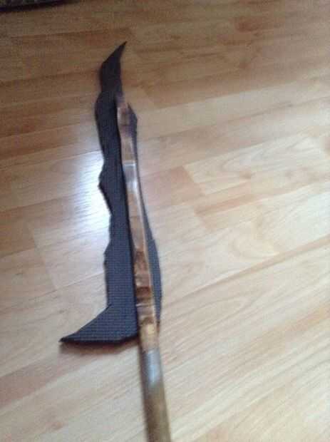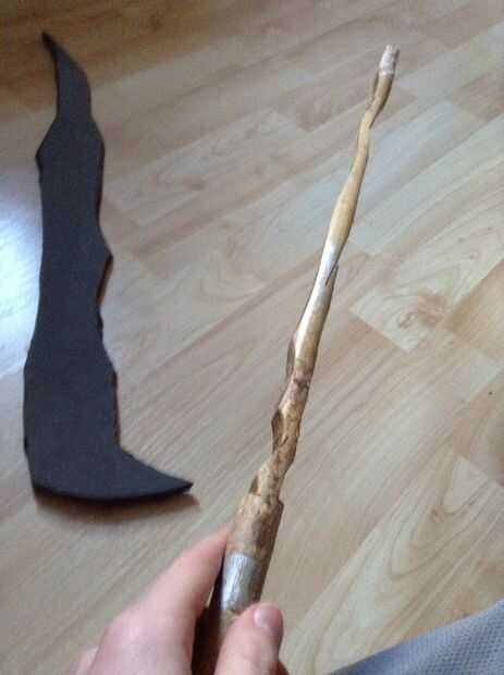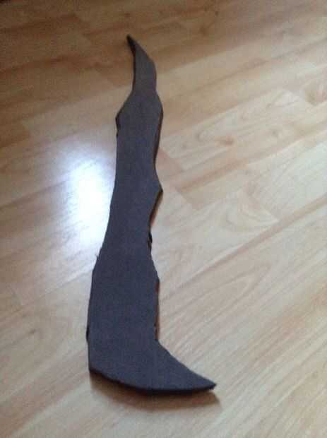 Prop para mi cosplay en progreso, armadura completa de Daédrico. Obviamente se trata de la espada. Está hecho principalmente de madera que forma utilizando un grueso archivo, lijadora de Palma, herramienta rotatoria y acabada con papel de lija. Despu