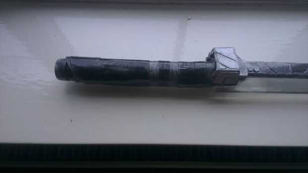 Una combinación de aerosol y pintura el módulo del interruptor y la manija de la mano resultó la más efectiva (después cubriendo la hoja y secciones ya pintado). I utiliza principalmente plata acrílico para los interruptores y pintura en aerosol negro mate para el mango, así como seco cepillar los bordes con una mezcla de negro.