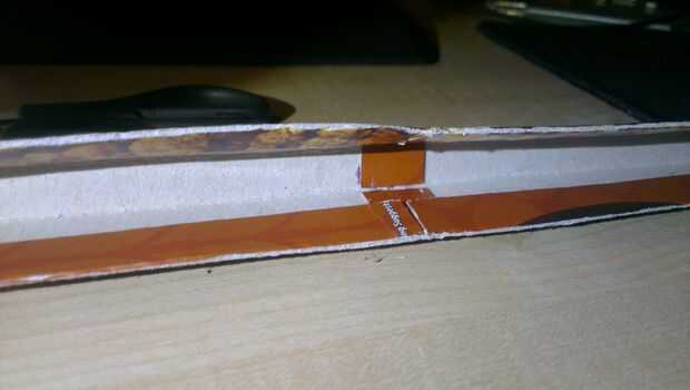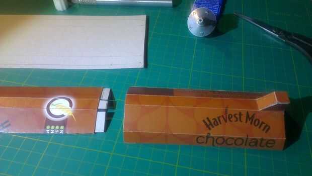 Tarjeta de la caja de cereal era lo suficientemente fuerte para hacer una cubierta para cubrir la parte superior de la hoja y la tira de LED de la casa. La cubierta principal fue formada de las secciones ancho 9cm (cresta ancho 1cm, 2cm lados alta y un adicional 2cm que se doblará en los lados para darle un borde más redondeado.