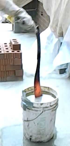 Las dos etapas son Temple y luego revenido, Temple endurece la hoja pero es bastante frágil, mientras que templa suaviza el acero por lo que es menos frágil. En conjunto los dos procesos hacen el acero más resistente (aunque depende del calor que utilizas sobre cómo suave/difícilmente será).