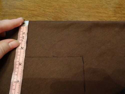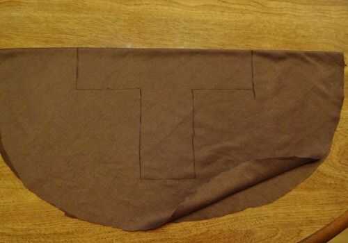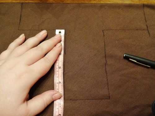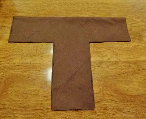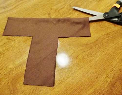 Para el puño, agarrar un corte de tela marrón y doblar por la mitad. Esboce una forma de "T" con las medidas en mis fotos como guía. Cortar la forma de "T" de la tela y esta se la empuñadura o mango de tu espada.