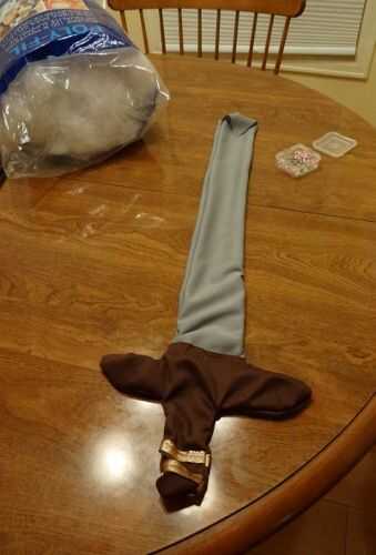 Esto también es un buen momento para coser cualquier detalle oro que desee en la empuñadura.