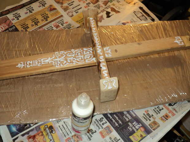 Pegué en algunos pedazos de palo de paletas de la Cruz en el ornamento de la manija.
