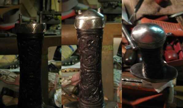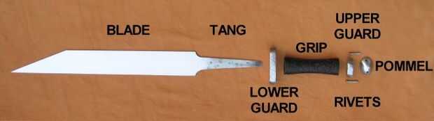 colocado encima de la empuñadura y el tang es martillado sobre en él. El tang de Blas en