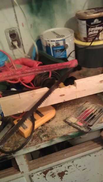 Los cortes de alivio se hicieron haciendo una serie de cortes más o menos horizontales, vertical y diagonal con la Sierra de arco. Esta había hecho un mango muy áspero, pero planeó en el embalaje de todos modos, así que esto no era gran cosa.