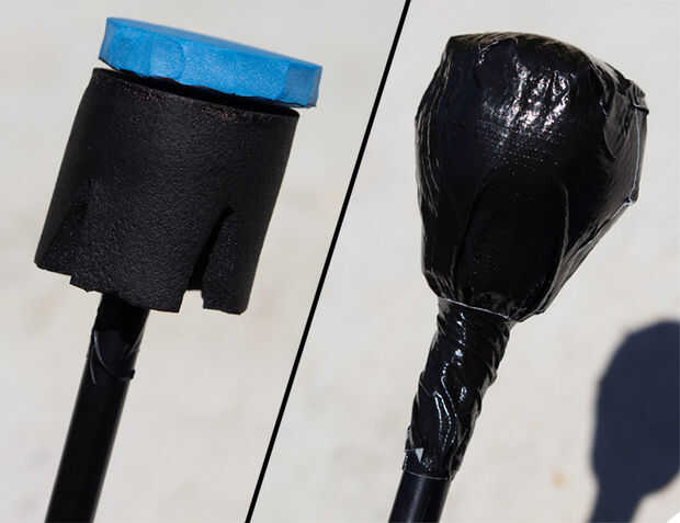 Cómo usted pad out que el pomo va a depender qué espuma tienes disponibles. En este caso utilicé algunos izquierda sobre 9 x 38 tubo de aislamiento y el 10mm 30 de EVA. Cortar triángulos del tubo para permitir que se doble alrededor de la bola de squash y cortar un círculo de la 30 de EVA a la tapa de la parte superior.