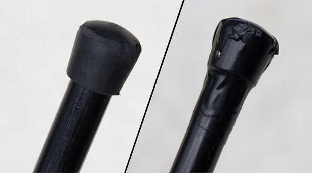Hay una variedad de métodos para inclinar los corazones, incluyendo el uso de bolas de calabaza cortada, o un pequeño corte de la estera del piso de goma dura. Esta espada larga que fui con una opción barata y perezosa, el tope de 12 tamaño cabe muy bien sobre la base de 14mm y es razonablemente suave. Nunca menos utiliza la cuchilla para afeitar el borde fuera y redondo hacia fuera la parte superior. Por último, ha grabado en su lugar para asegurar que no funcionará es manera.
