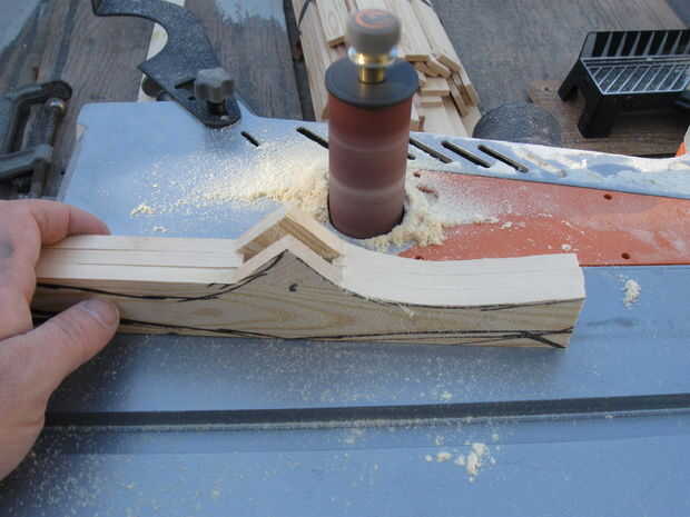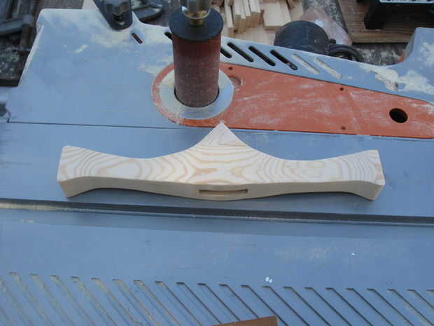 La empuñadura es tres secciones de material del listón grueso con un espacio en el medio para el listón de la hoja ir a través.