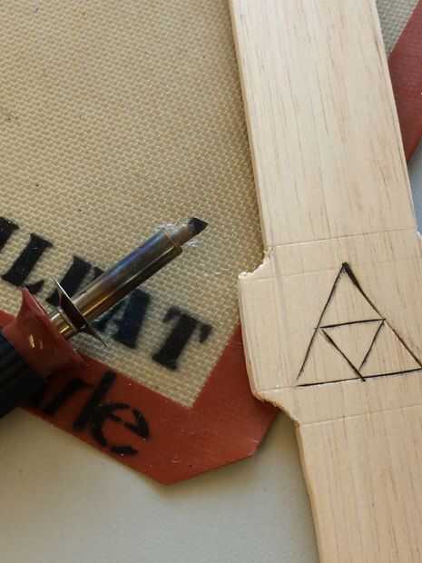 Espada Maestra enlaces hay tres triángulos en ella. así que lo que hice fue que utiliza un quemador de madera para hacer los triángulos.