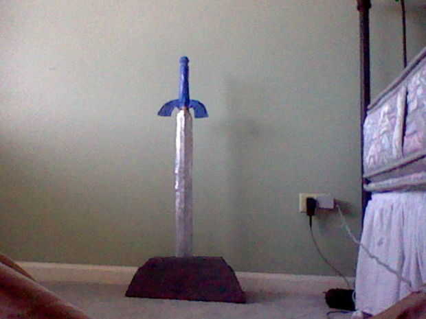 esta una espada de maestro de la leyenda de Zelda Ocarina del tiempo y el Twiligt Princess, i hecha de KVG y luego lo cubrió con unas 5 capas de cinta de metal y luego cubrir el mango con cinta azul. Disfrute :)PD: im en proceso de hacer el hyliano e
