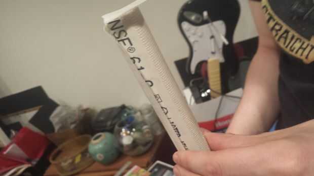 Esta parte es complicada. En primer lugar, tienes que cubrir toda la longitud de la base con cinta adhesiva. No escatima en su cinta aquí! Usted quiere tener la mayor adherencia posible, para asegurar que su aofrecía es fuerte. una vez que ha cubierto su borde y los extremos con una tira de cinta, cuidadosamente Alinee la sierra, asegurándose de que sale 2" desde cada extremo. Tal vez conseguir un segundo par de manos para esto. Tómese su tiempo para que la hoja esté lo más recta posible y alineado muy bien a lo largo de la base. Si está utilizando ¾" PVC, la hoja debe ser aproximadamente el mismo ancho.
